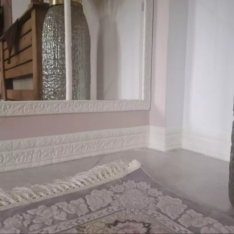 قرنیز فومی پشت چسبدار سفید طرحدار ابعاد 9در230 cm، ضخامت 6 میل (پس کرایه)