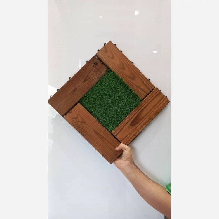 تایل ترکیب چوب ترموود و چمن 19میل (درجه1)ابعاد40در40 cm چهار تکه ای،کاملآ ضدآب و قابل حمل و نصب در هر محیط (پس کرایه)