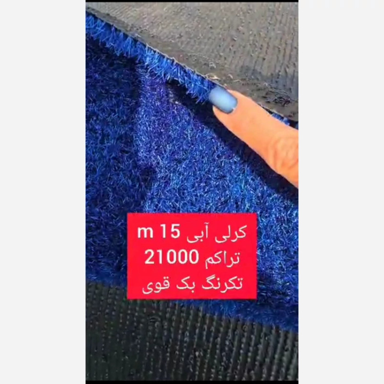 چمن مصنوعی کرلی آبی 15میل تراکم 21000 تک رنگ بکینگ قوی(پس کرایه)