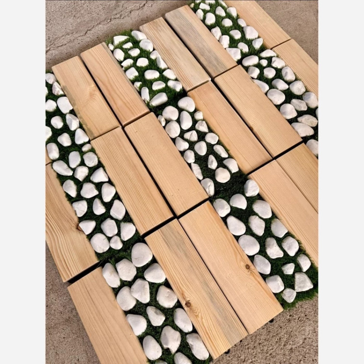 تایل ترکیبی چوب ترموود چمن و قلوه سنگ 19میل ابعاد 30در30،ضدآب و قابل حمل و نصب درهرمحیط. (پس کرایه)