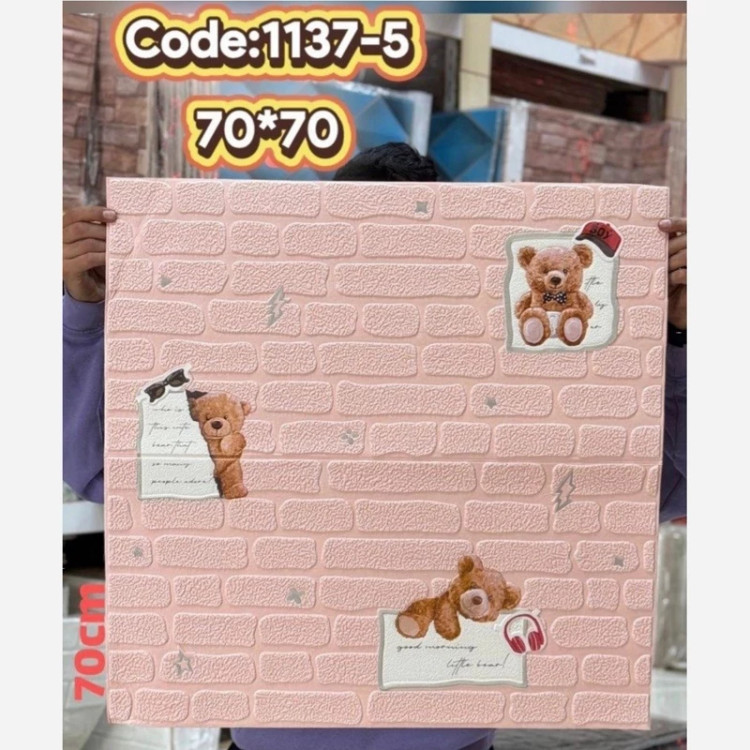 دیوارپوش فومی پشت چسبدار طرح خرسی صورتی کودک کد 5-1137 ابعاد70در70 cm، ضخامت 5میل(پس کرایه)