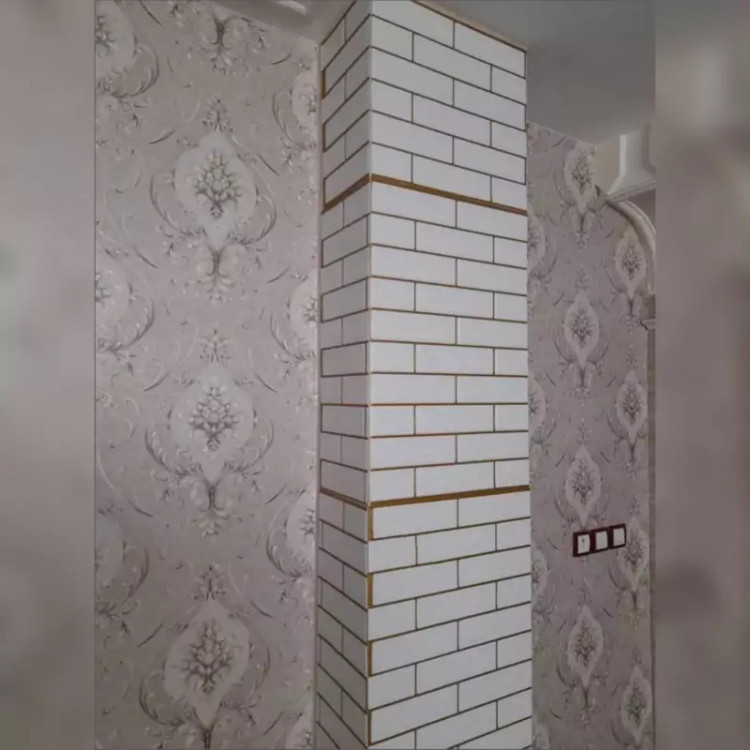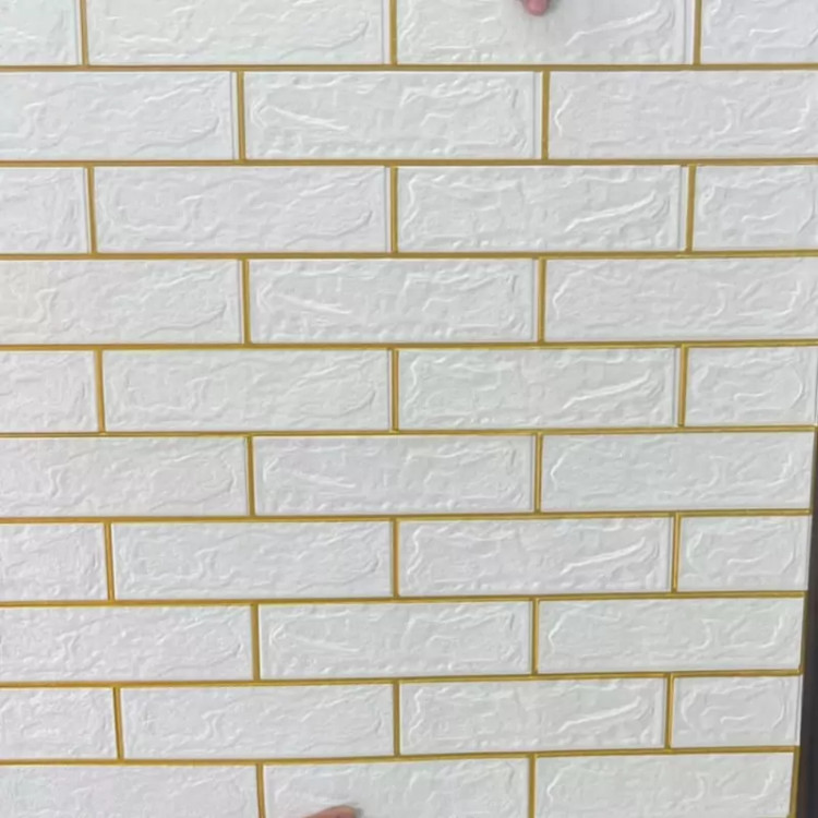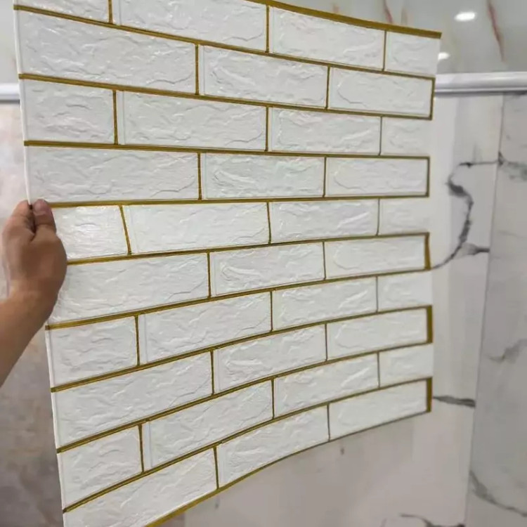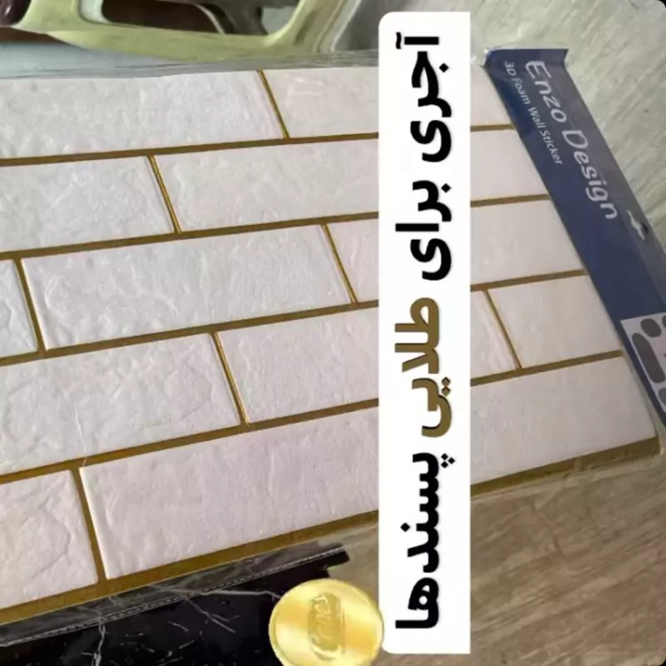 دیوارپوش فومی پشت چسبدار طرح آجرسفید رگه طلایی (بندکشی طلایی) 70در70 cmضخامت 4میل(پس کرایه)