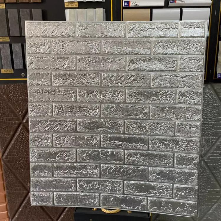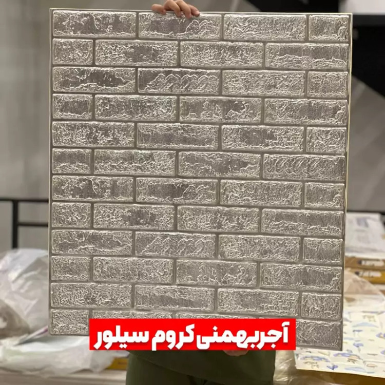دیوارپوش فومی پشت چسبدار آجربهمنی سیلور کروم 70در77 cm ضخامت 8میل (پس کرایه)