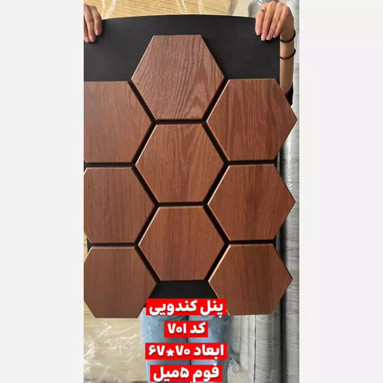 ترموود فوم پنل شش ضلعی (کندویی) کد701، مغزMDF روکش چوب طبیعی ابعاد 70در67 cm (ارسال پس کرایه)