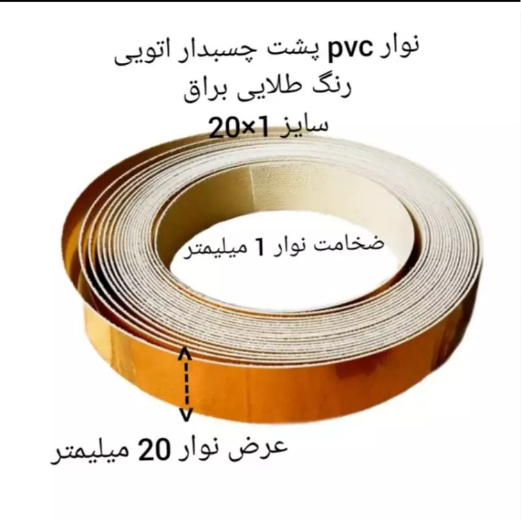 نوارPVC (تسمه) پشت چسبدار عرض 1.5cm طلایی رول 20متری (پس کرایه)