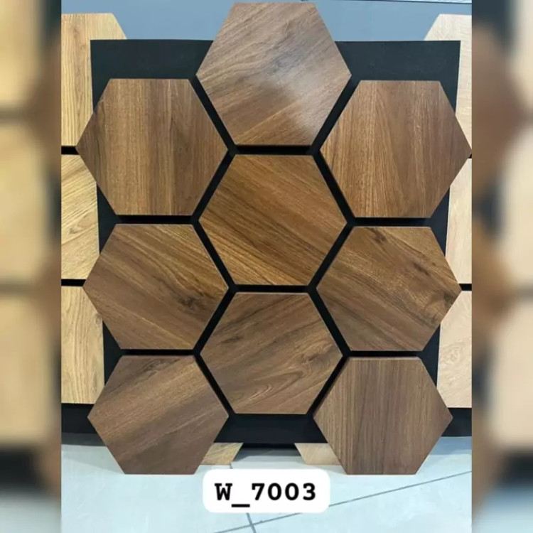 ترموود فوم پنل شش ضلعی (زنبوری) کد W-7003، مغزMDF روکش چوب طبیعی ابعاد 62در72 cm (ارسال پس کرایه)
